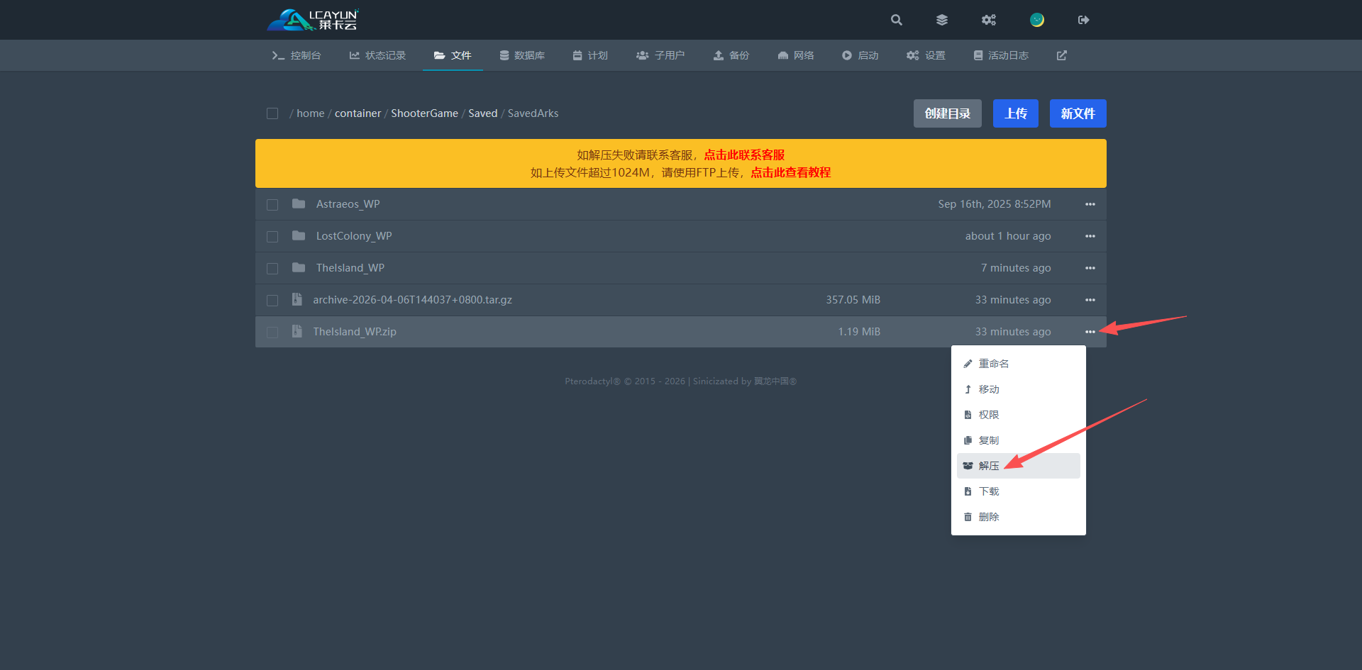将你的本地存档压缩成ZIP格式的压缩包上传至服务器