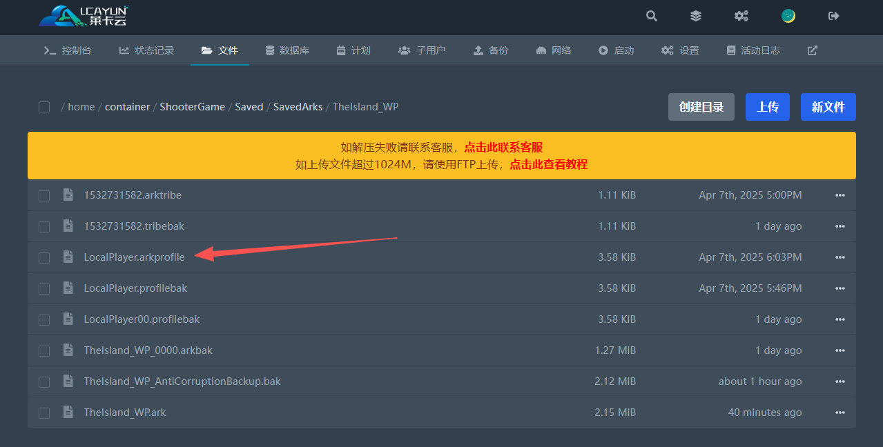 当前的文件中LocalPlayer.arkprofile文件就是存档开设者的存档