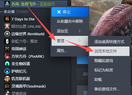 在Steam中右键你的飞升游戏,然后浏览本地文件