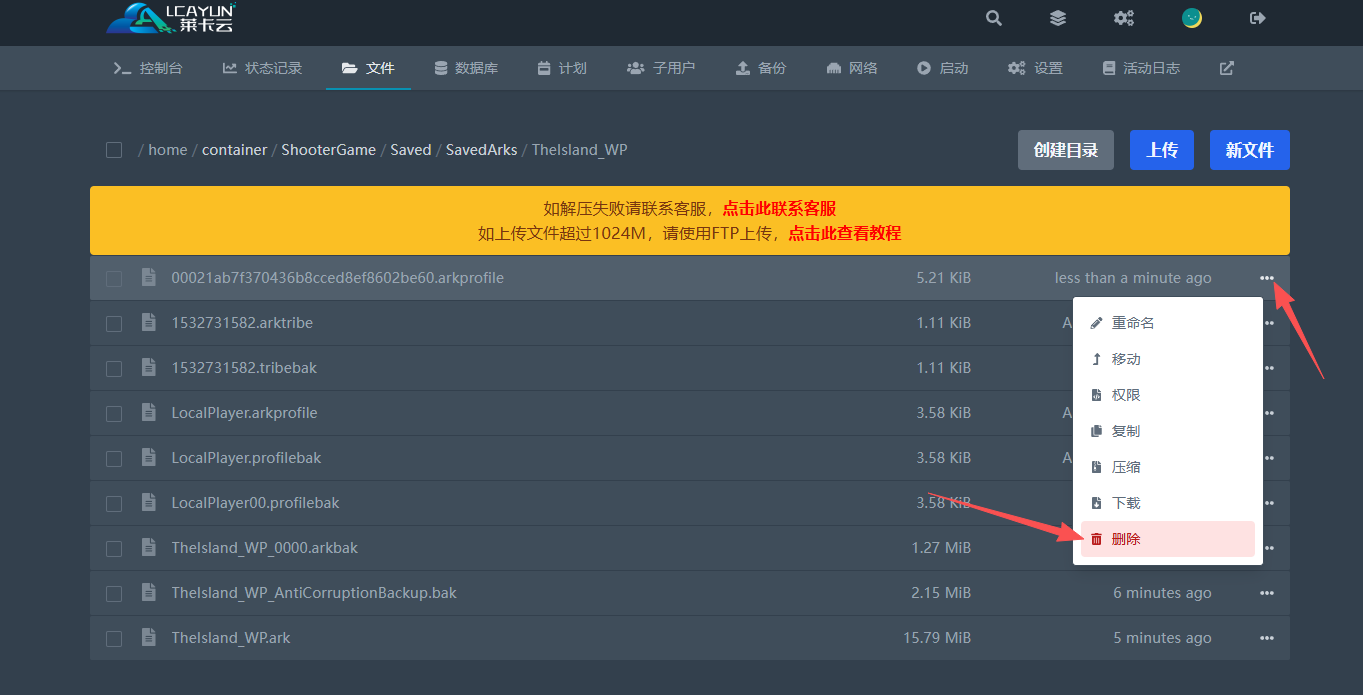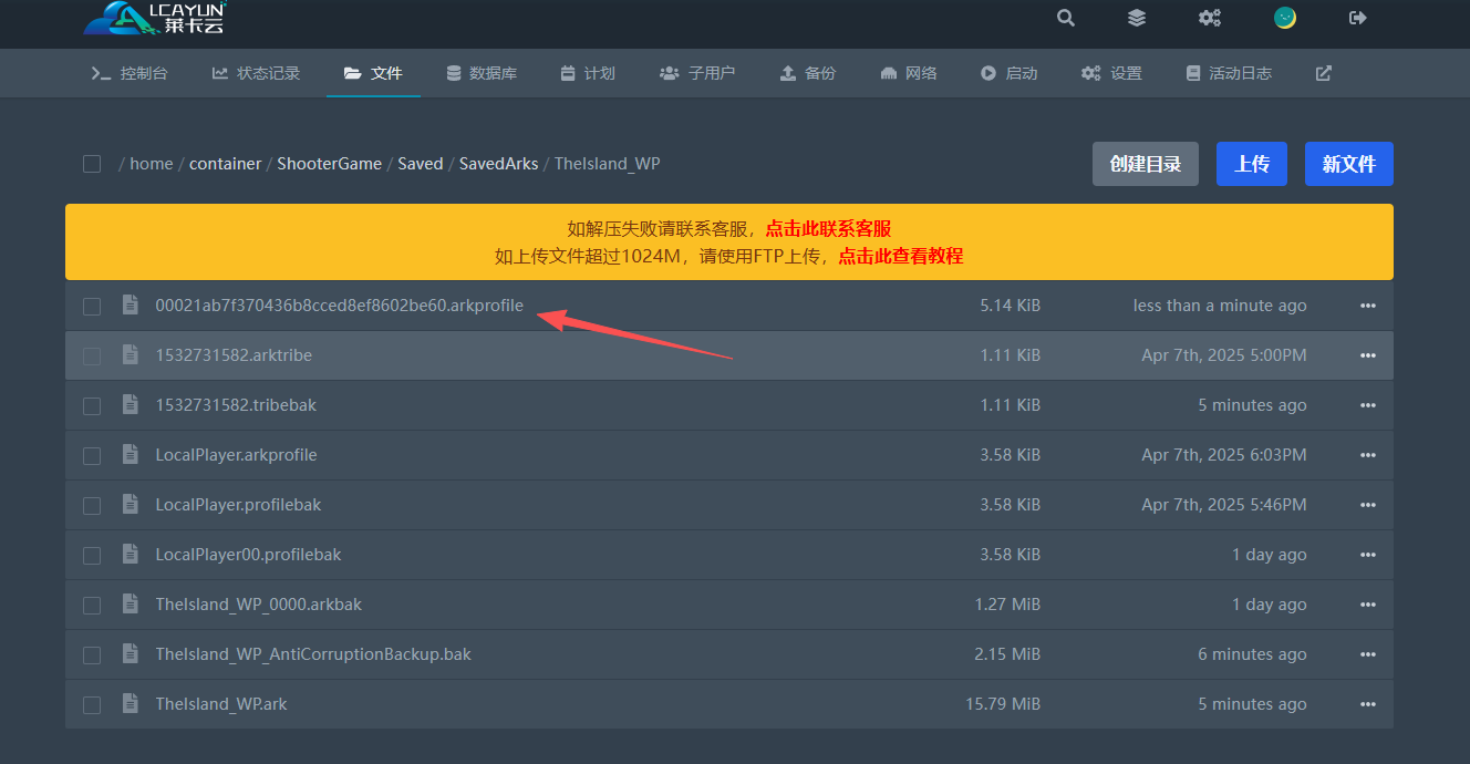 路径:/home/container/ShooterGame/Saved/SavedArks