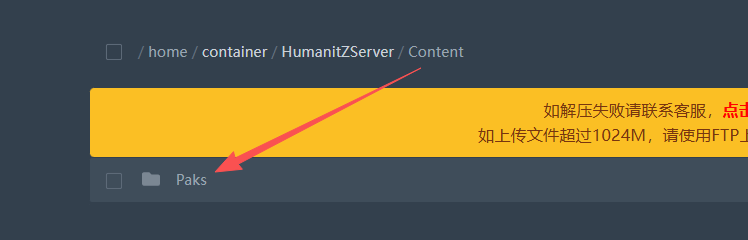 根据以下服务器路径找到服务器的Paks文件夹