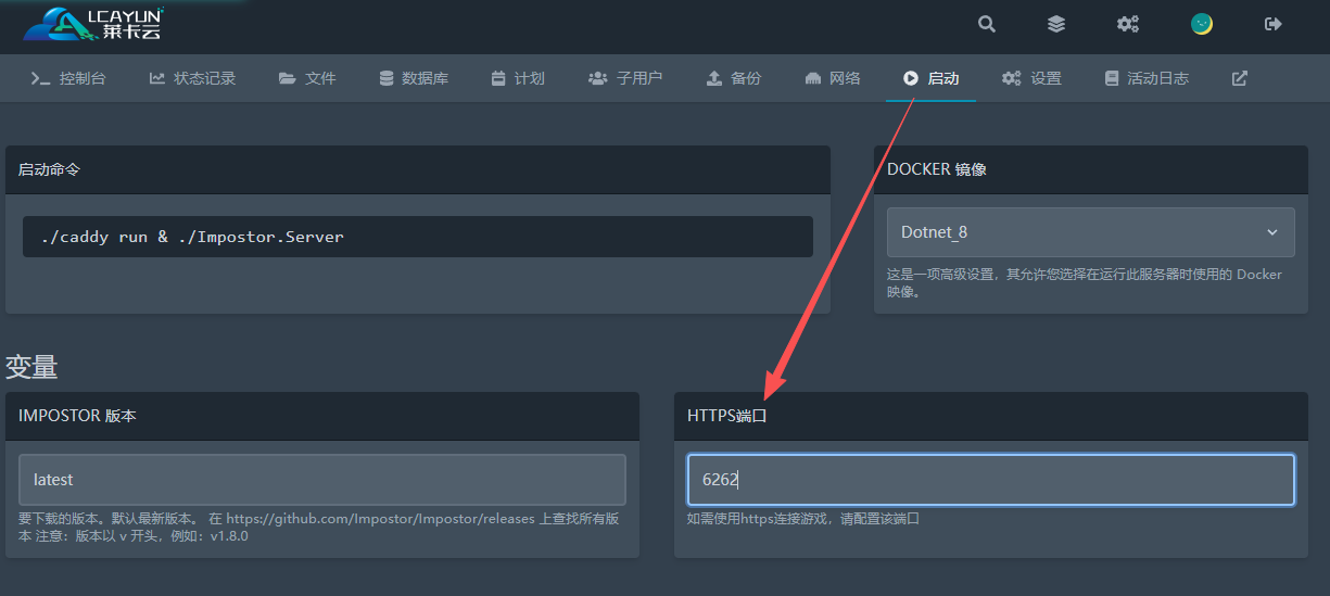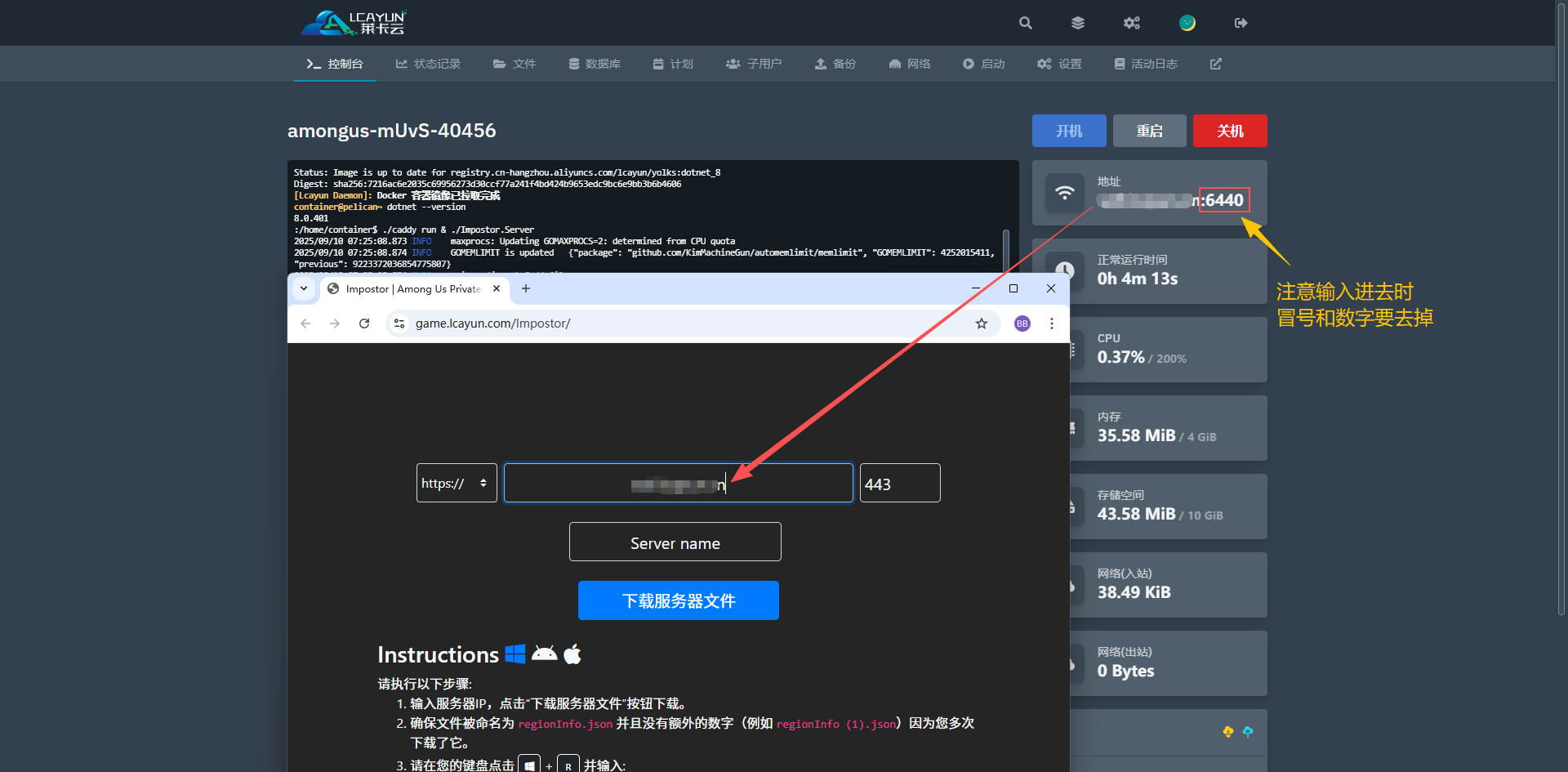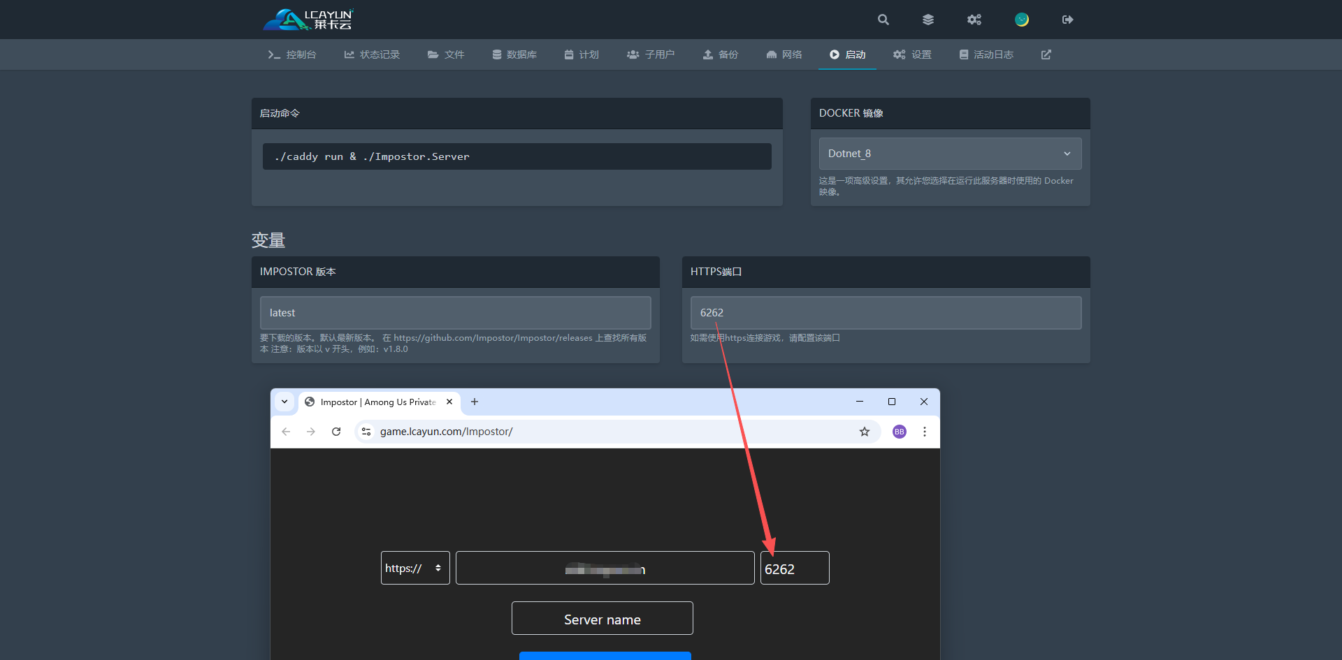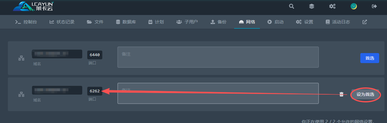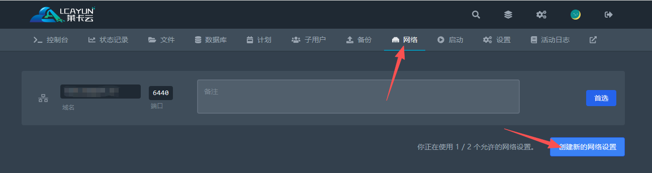 进入服务器面板后,先到网络页面创建一个新的网络设置