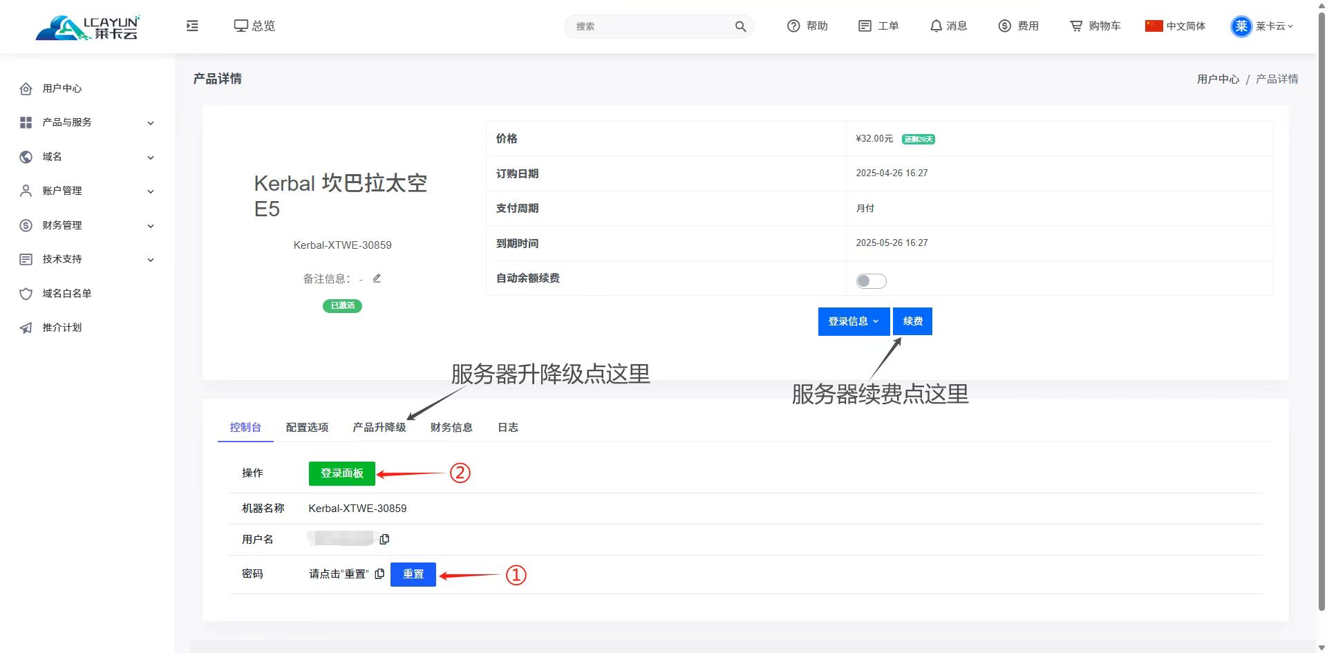 登录面板的信息在绿色的登陆面板按键下方,不是你的莱卡云账号