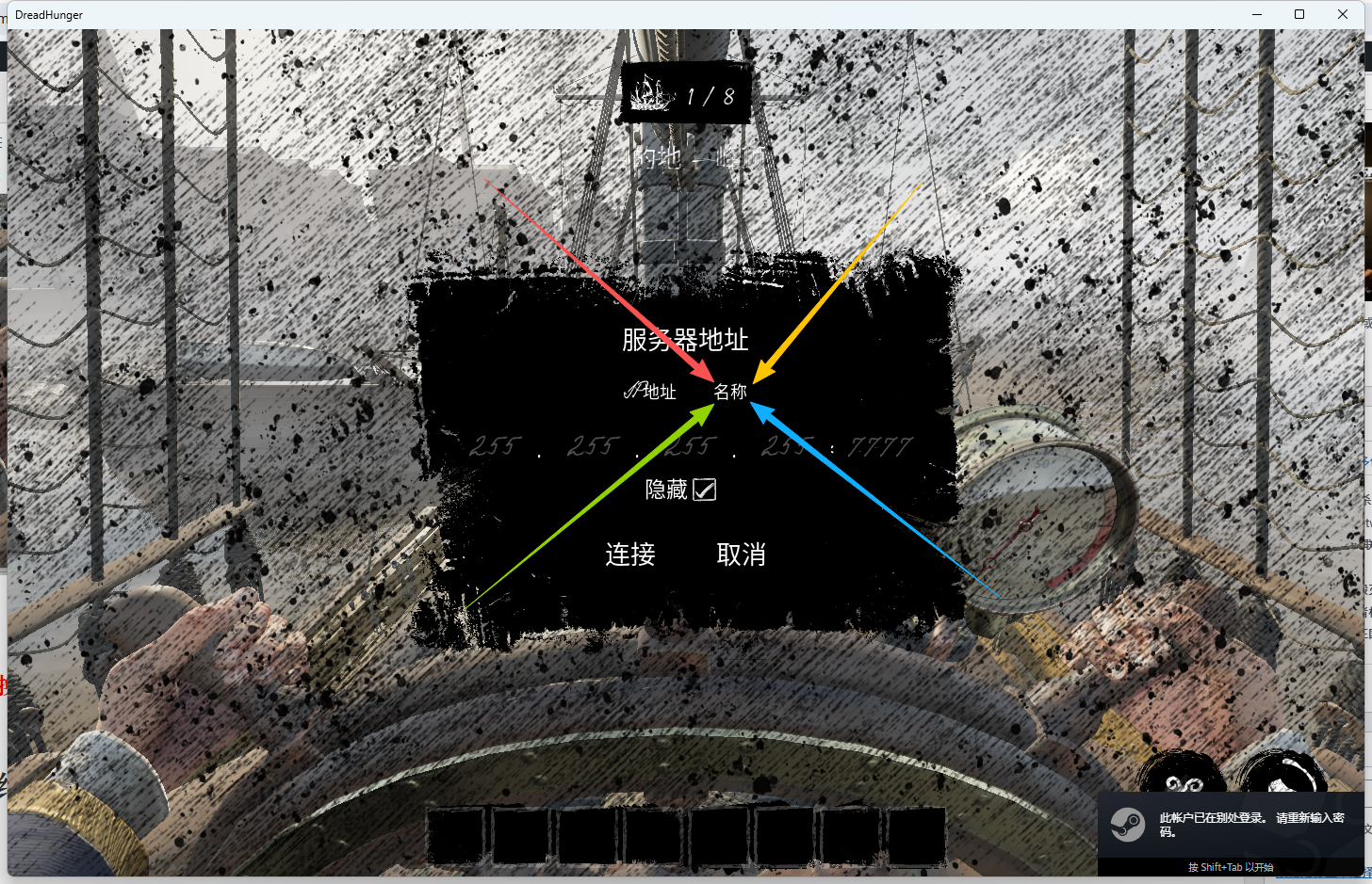 然后选择你你刚刚设置的两个端口进行开始游戏