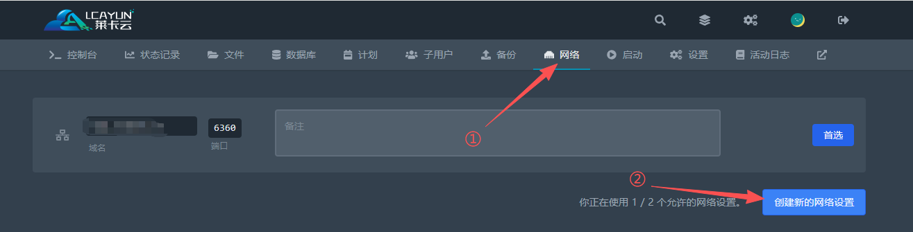 在网络页面你会看到一个端口,你需要点击创建新的网络设置创建一个新的端口
