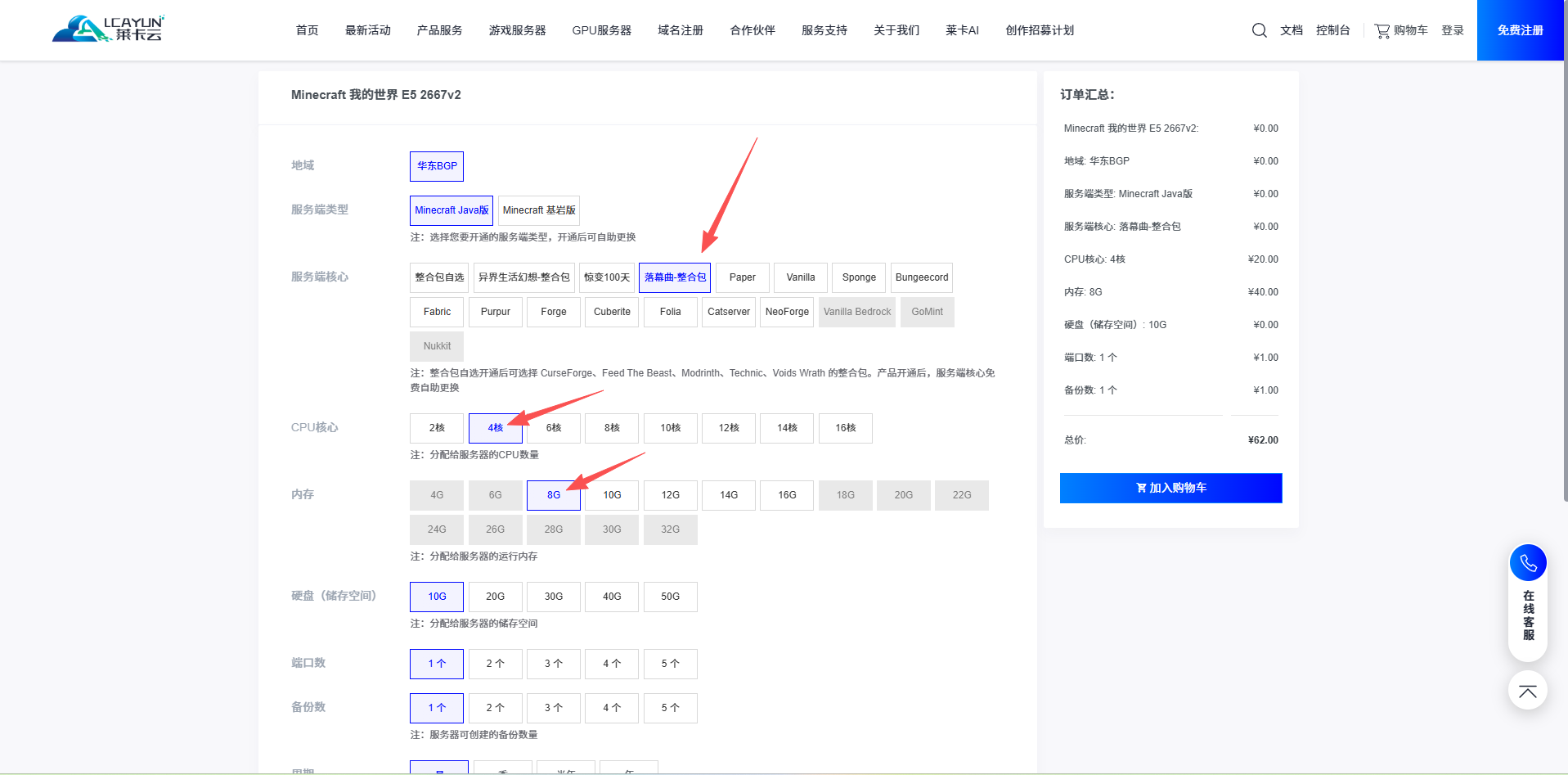 在购买的时候选择落幕曲-整合包,建议CPU:4核 运行内存:8G 起步(已经开过的可以通过产品升降级可以转换)