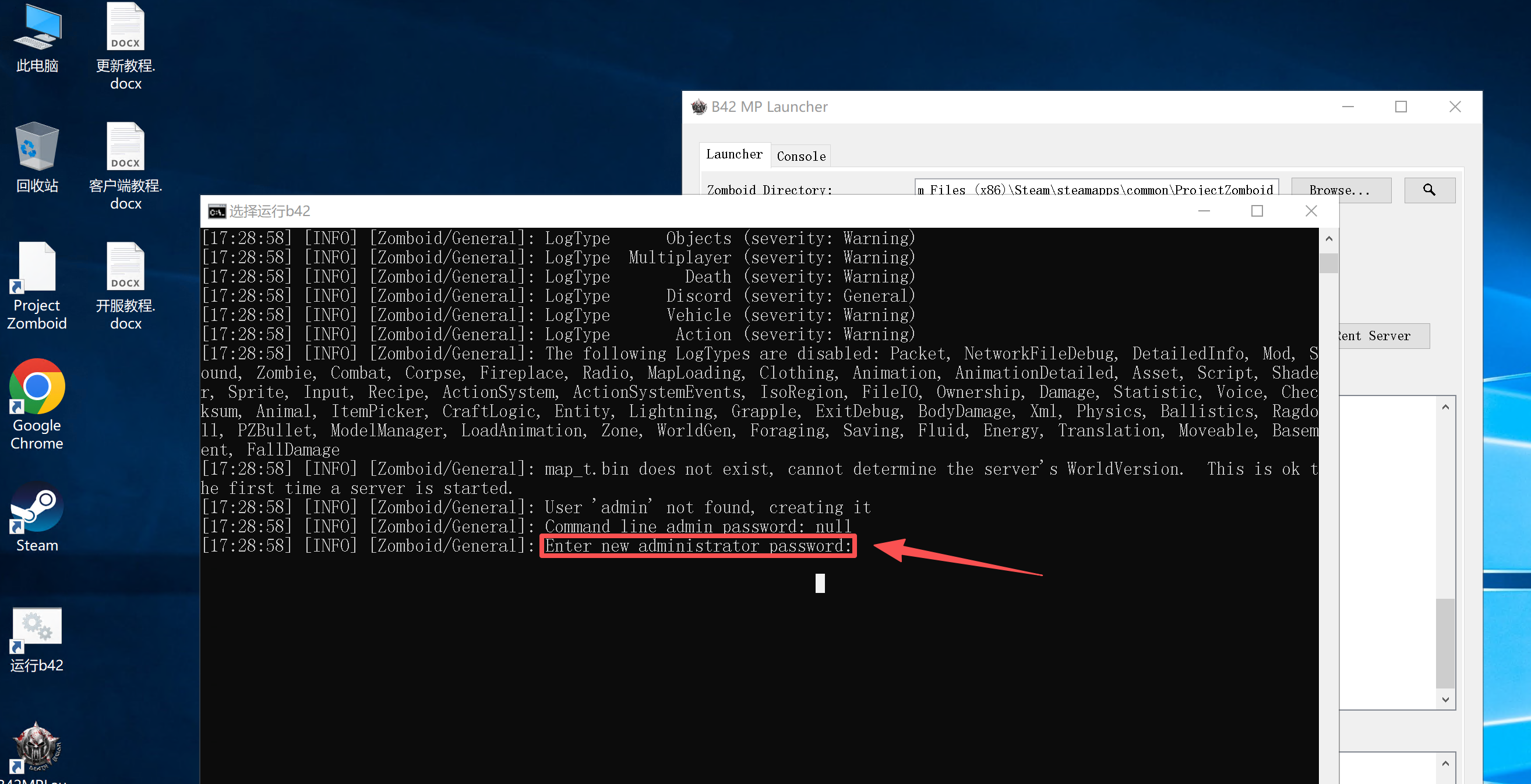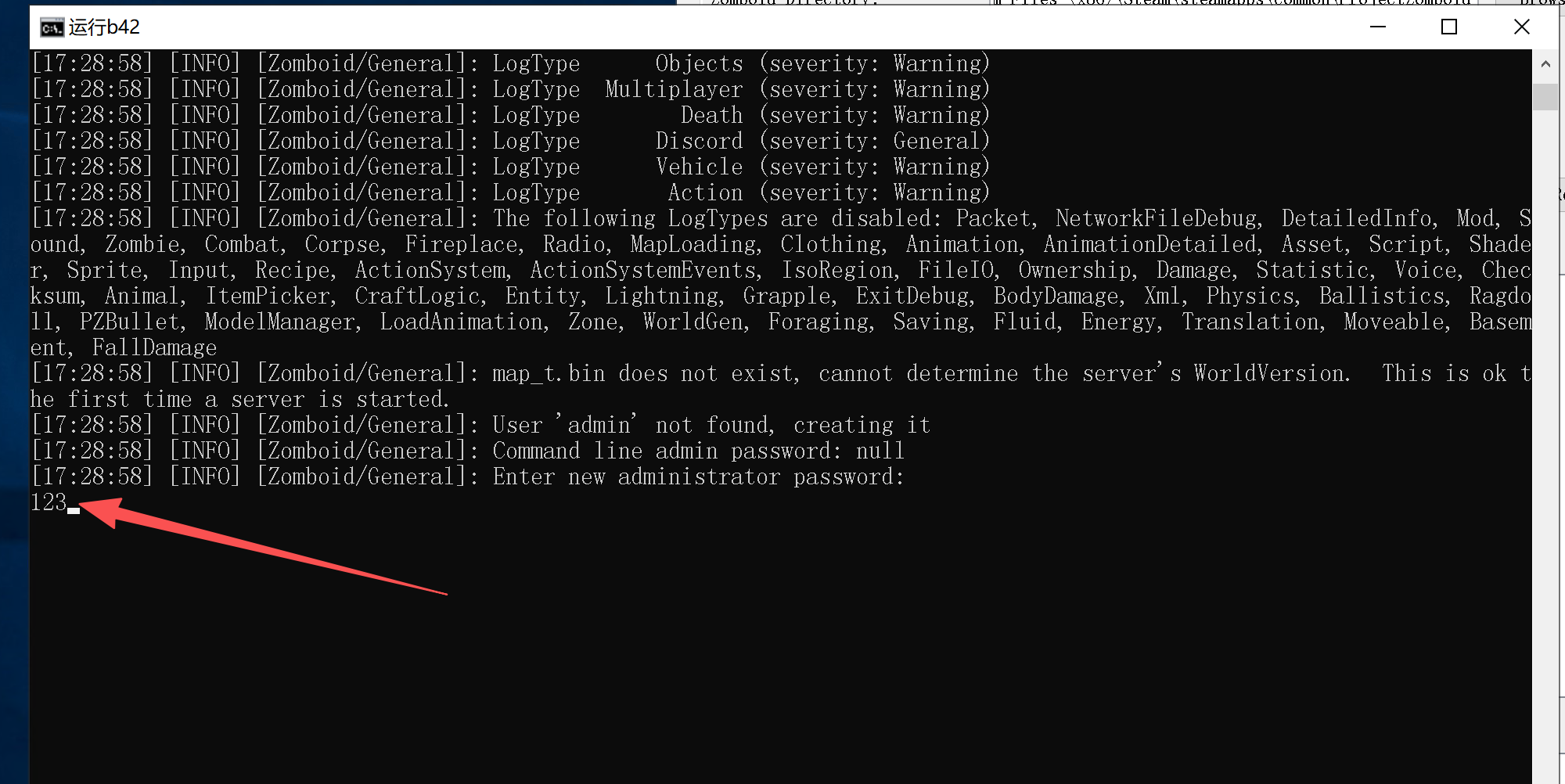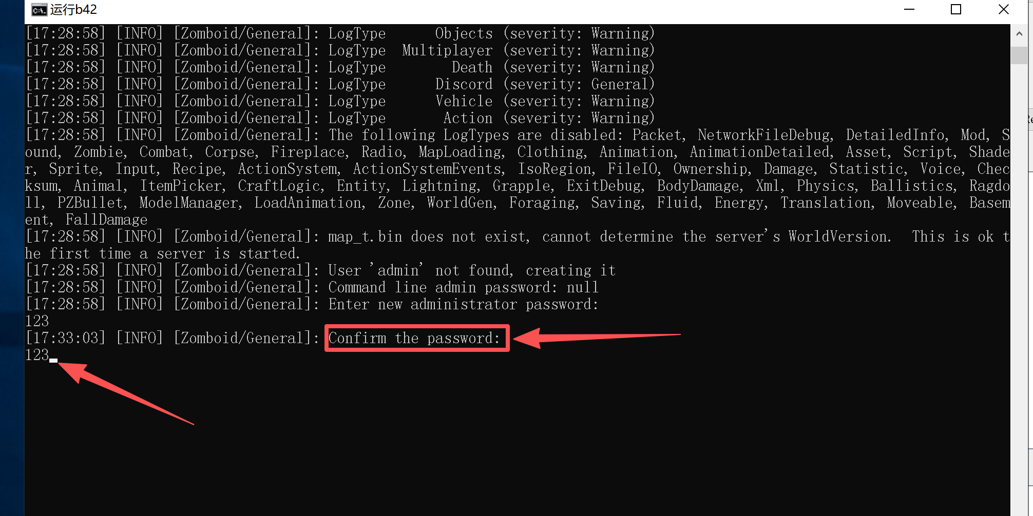 首次开服会卡在Enter new administrator password:意思就是让你输入管理员密码