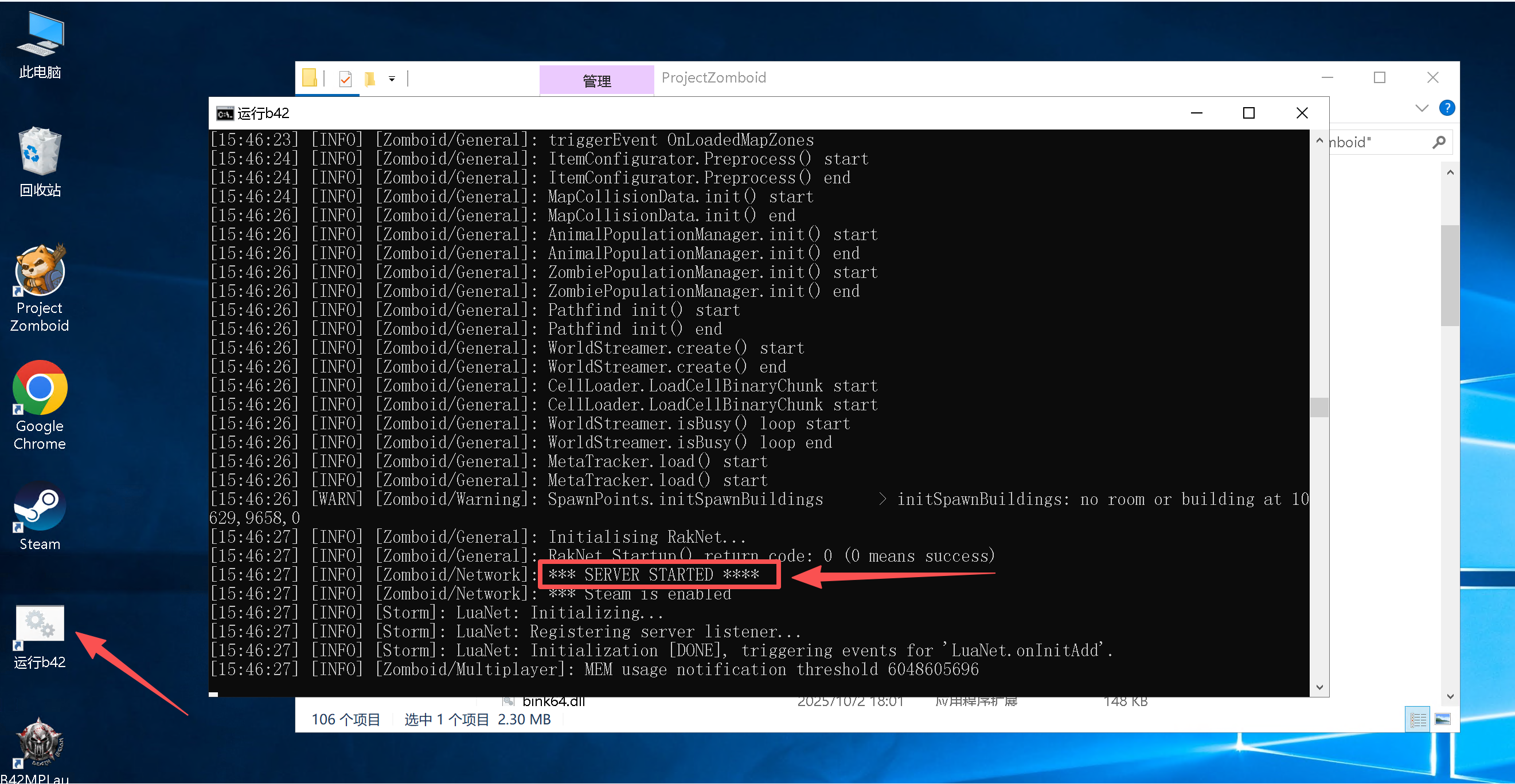 接着等待黑框出现*** SERVER STARTED ****就说明服务器已经运行起来了