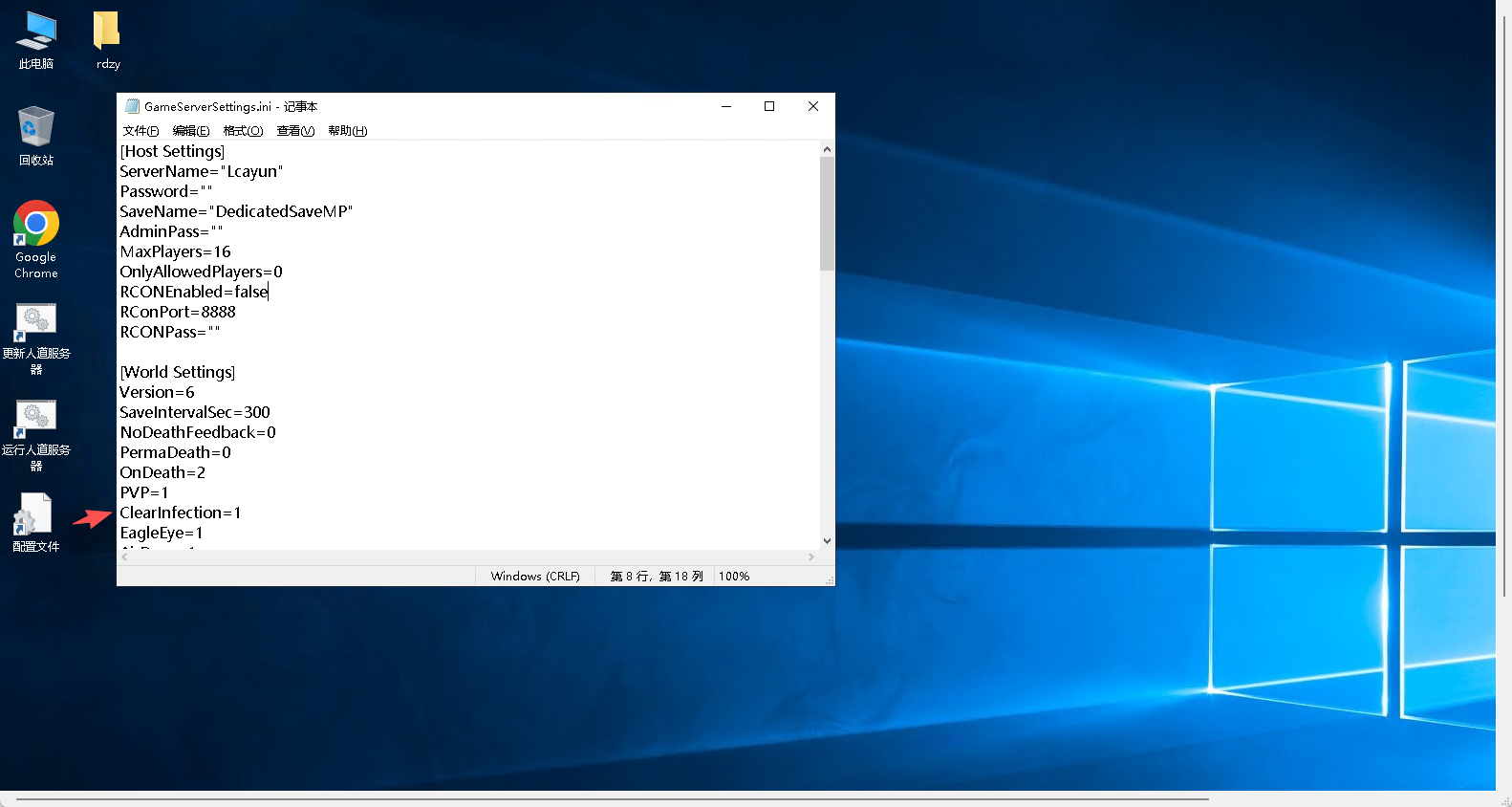 - LootRarity=战利品稀有度,0=稀缺,1=低,2=默认,3=充足,4=丰富,默认2