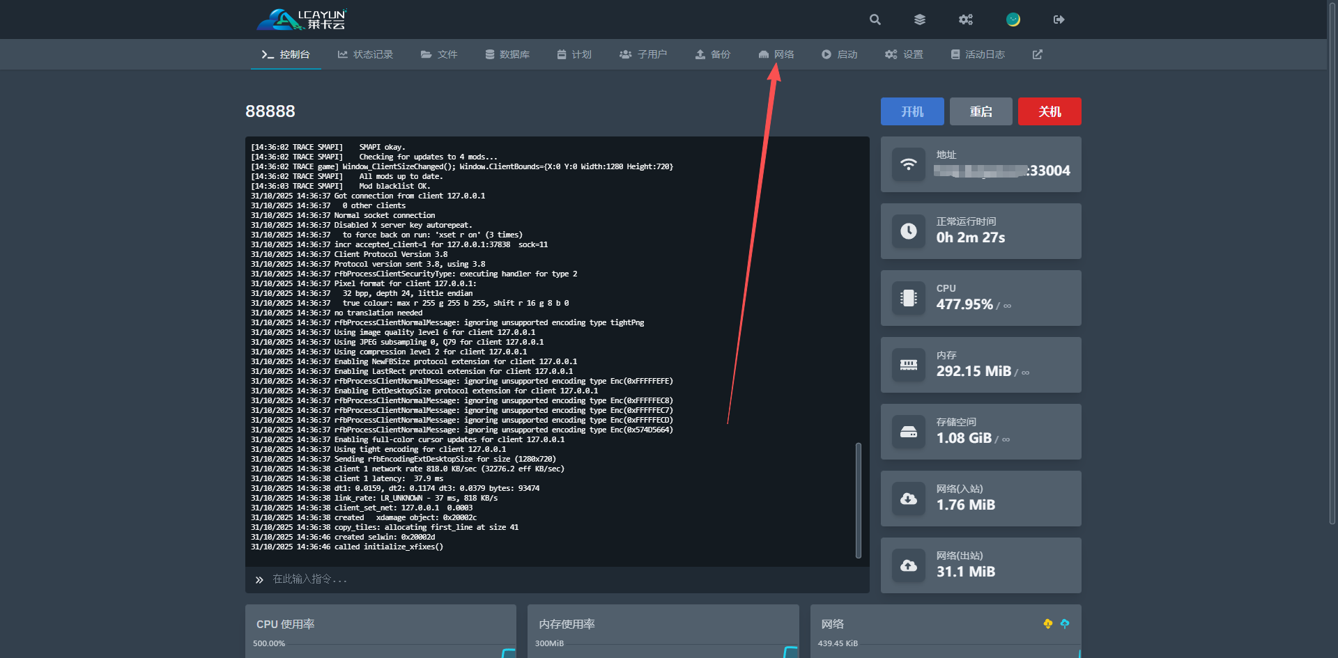 通过访问【(服务器地址英文部分)+(英文冒号)+(网页端口)】打开服务器的VNC