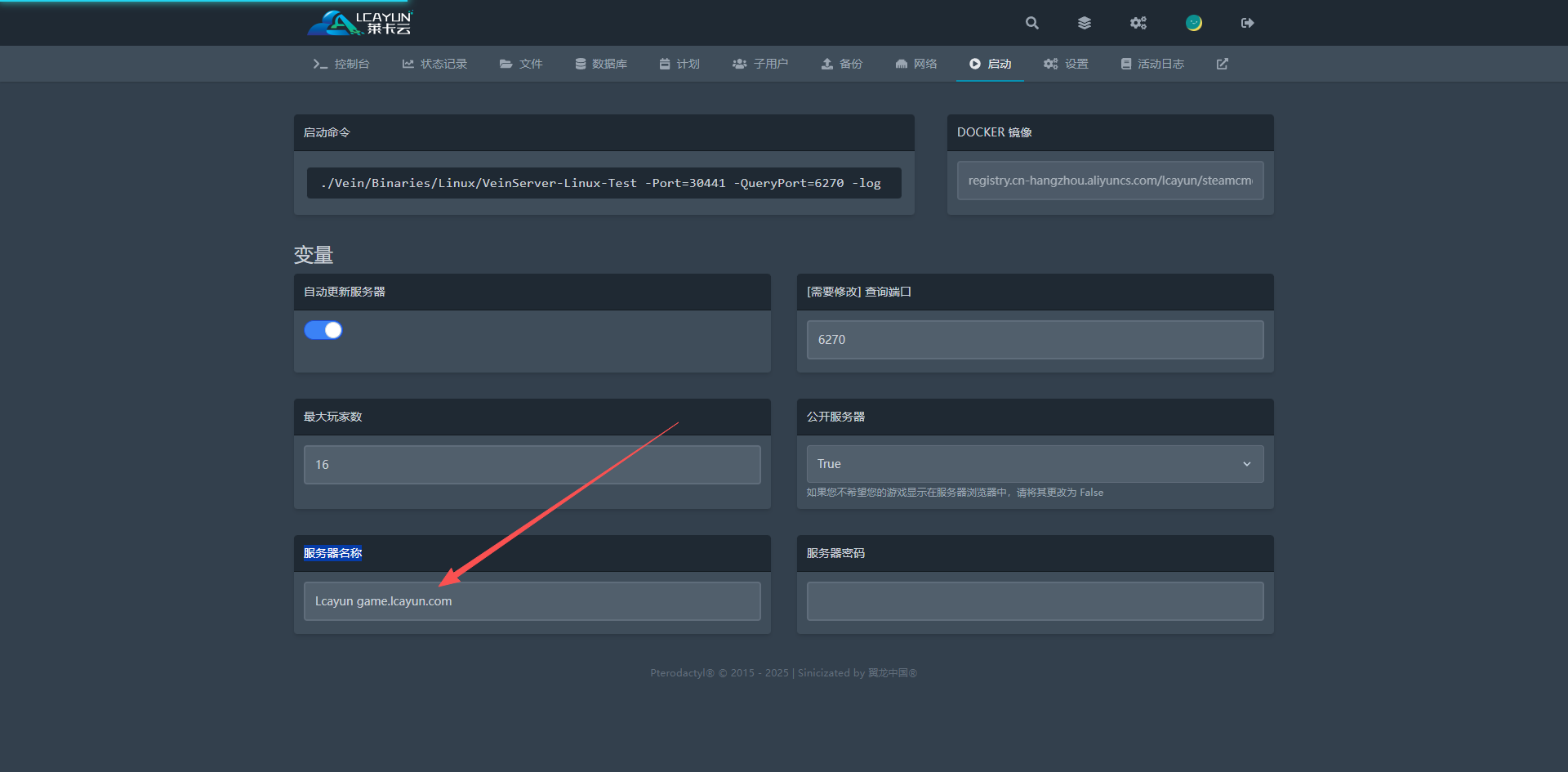 在启动页面找到【服务器名称】变量框,将你想要的名称修改进去