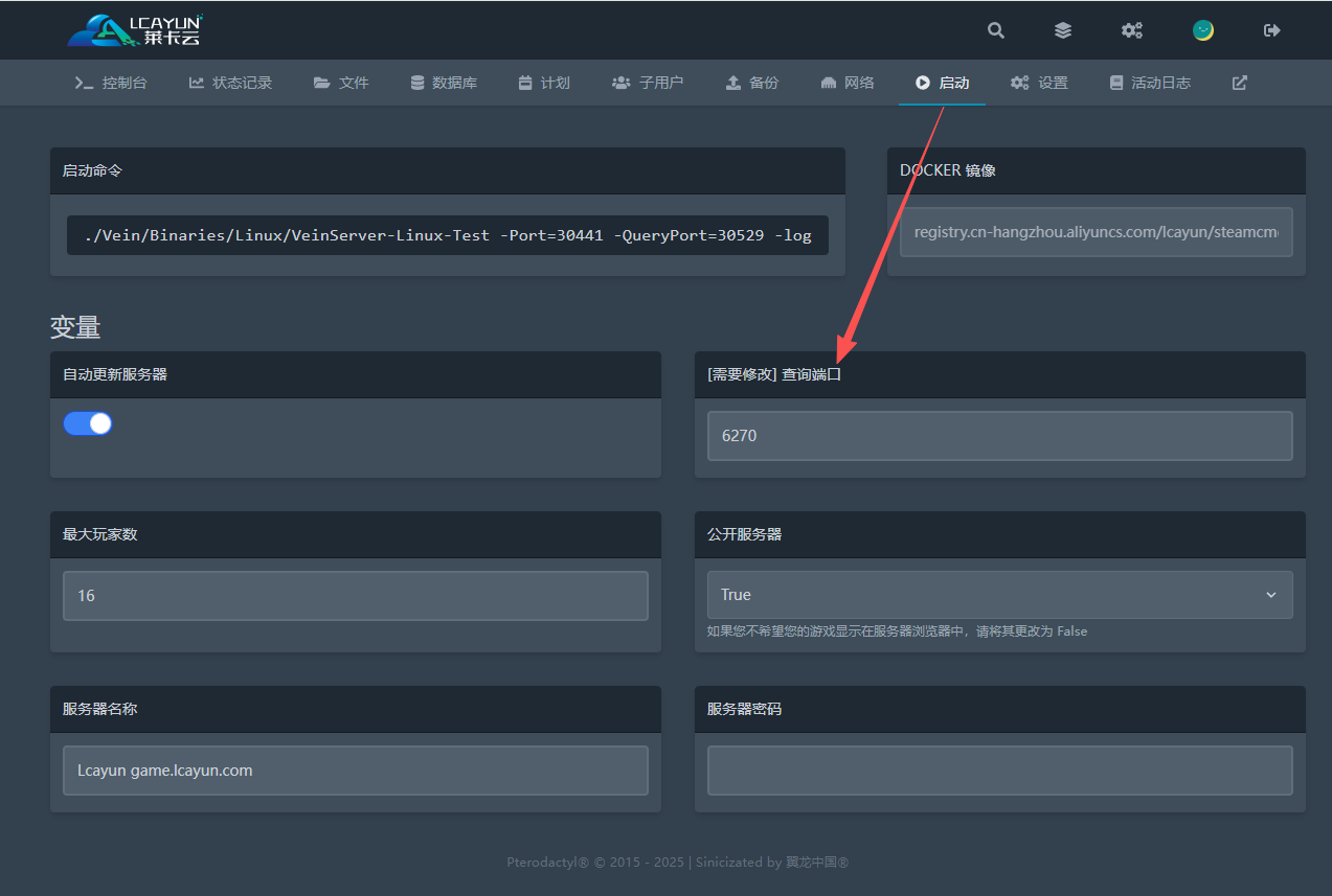 在启动页面找到【查询端口】变量框,并把你复制的端口数修改进去,如下图👇