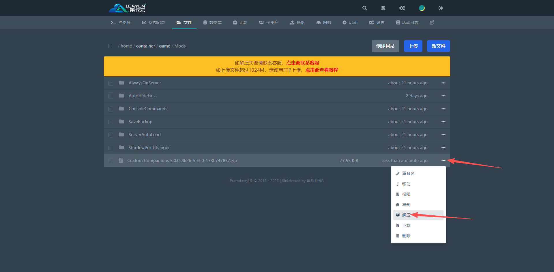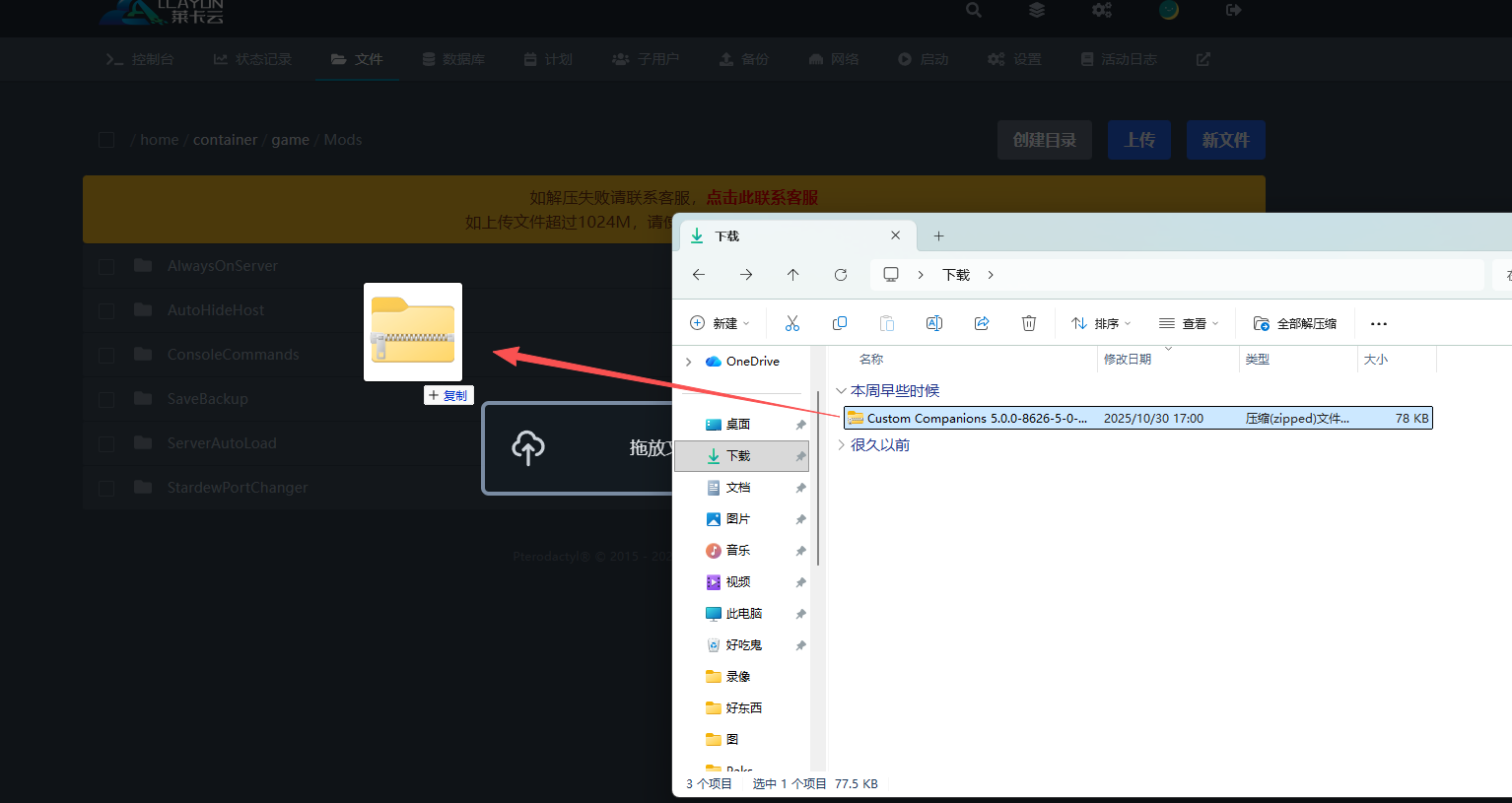 注意:如果你的模组还没有压缩,你需要先压缩你的模组文件,在上传压缩包