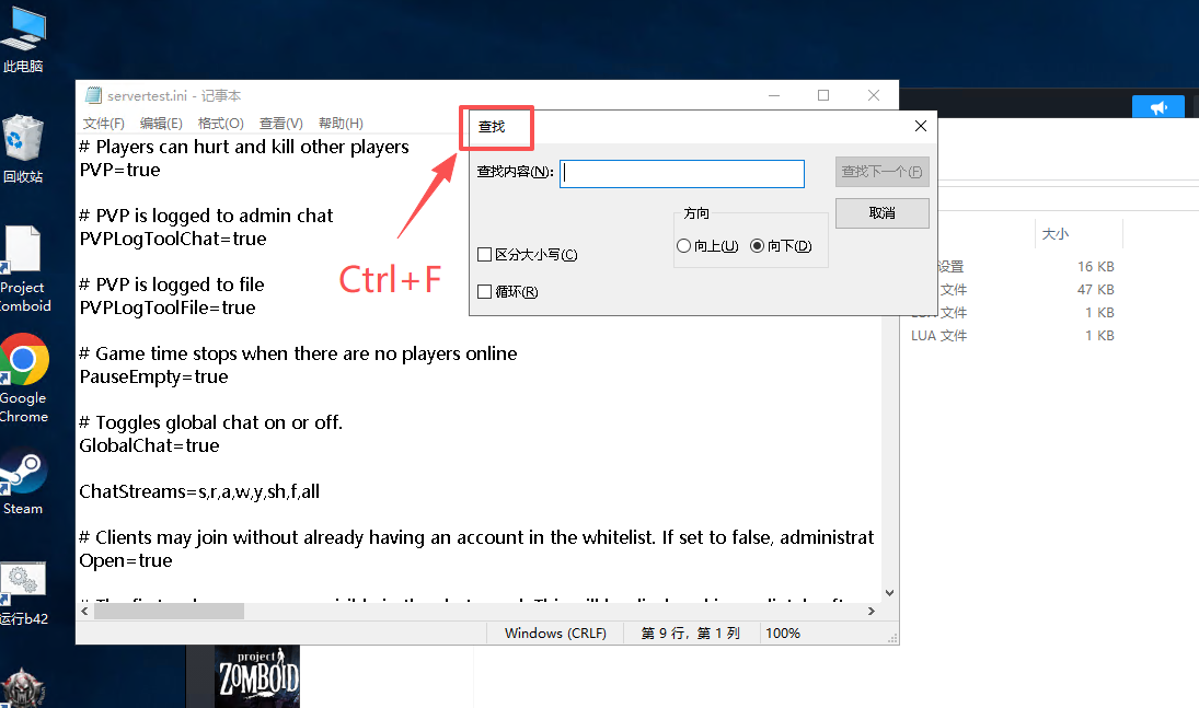 在弹出来的记事本中打开查找功能(快捷键Ctrl+F)