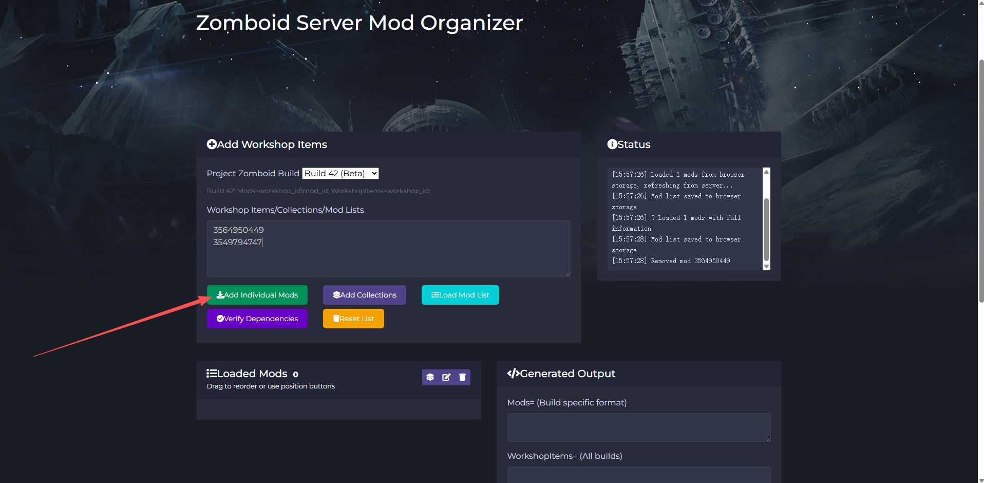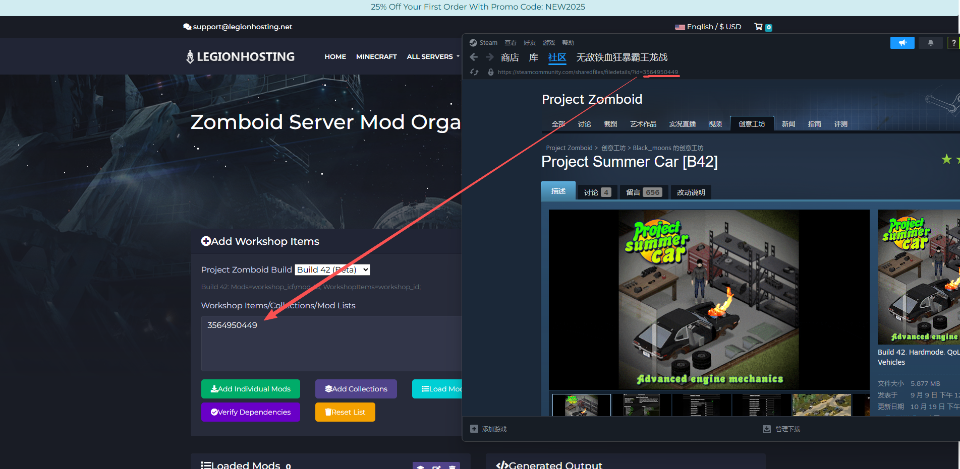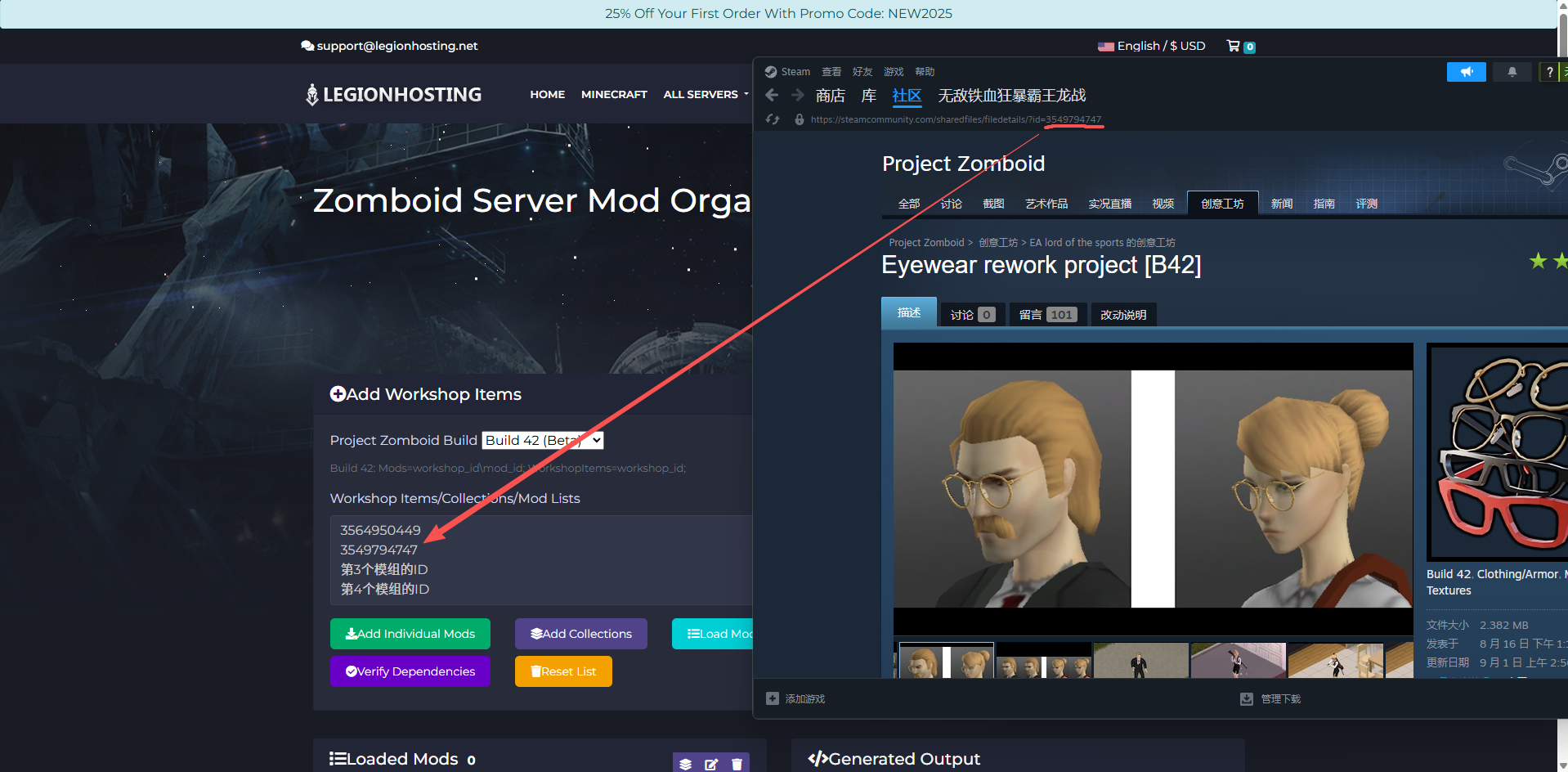将你获取的模组ID填到这个【Workshop Items/Collections/Mod Lists】下方的框内