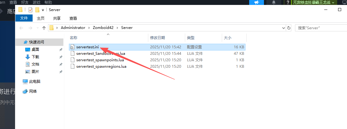 接着复制这一段输入进去并点击确定👉【%USERPROFILE%\Zomboid42\Server】