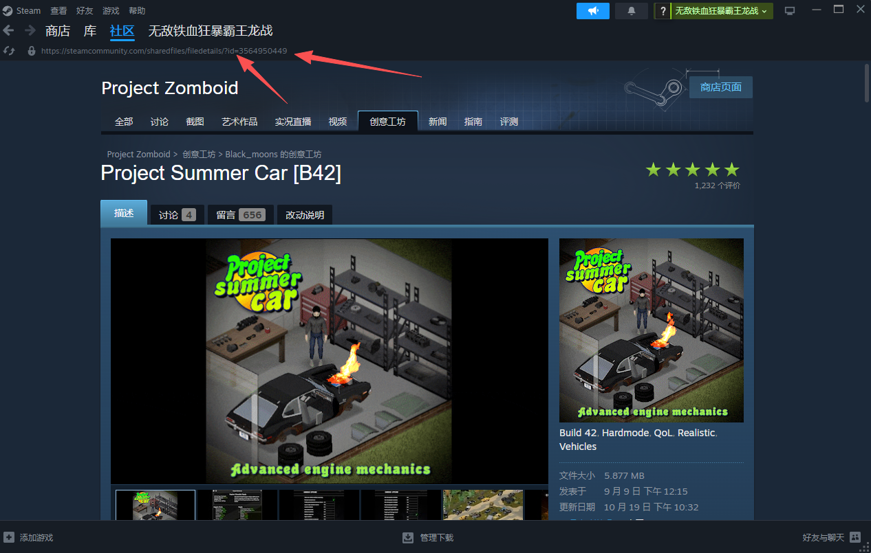 打开你的模组订阅页面,模组ID显示在该页面的连接里面,找到id=后面的数字,如下图👇