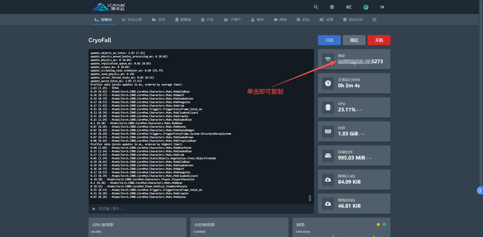 在你的莱卡云账户左侧栏目中点击产品服务,再点游戏服务器,再选择你的服务器点击操作