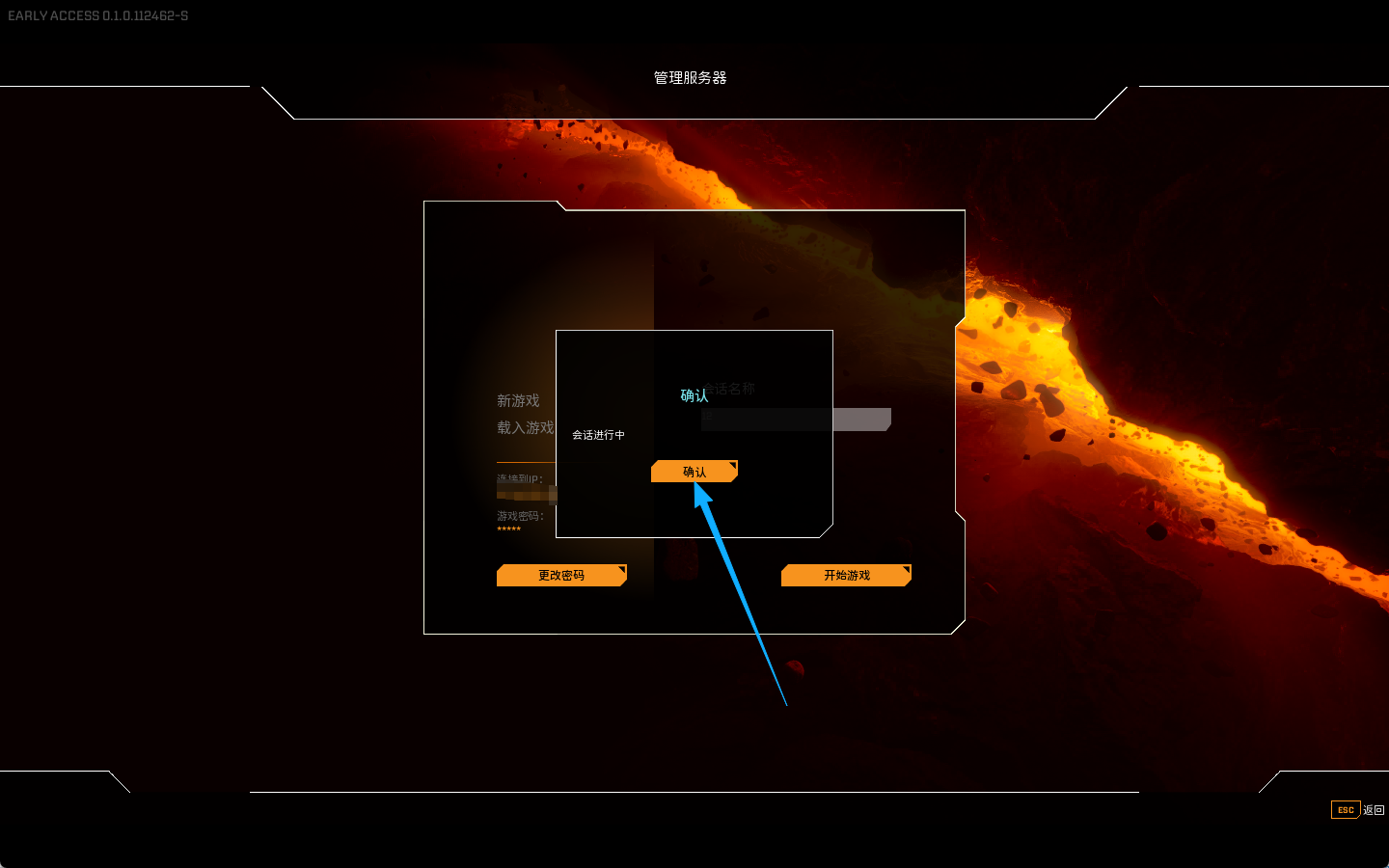 点击开始游戏后等待一会(等待存档启动完成),存档启动完成后会提示会话进行中,点击确认就会自动弹回主页面(到这里,玩家就可以开始连接游戏了)