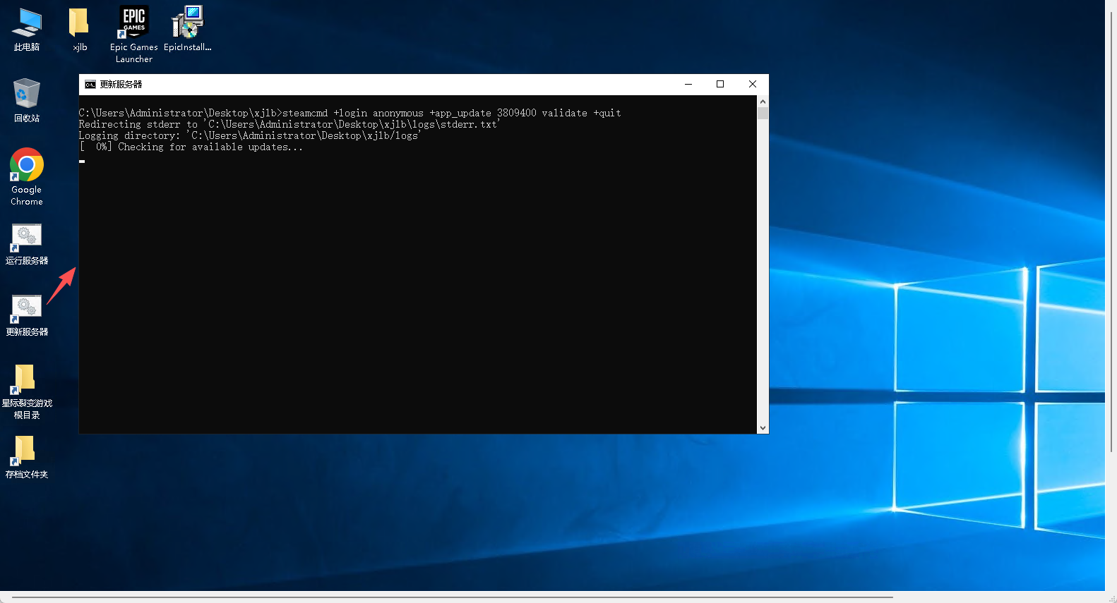 双击桌面的【更新服务器】更新你的星际裂变游戏服务器