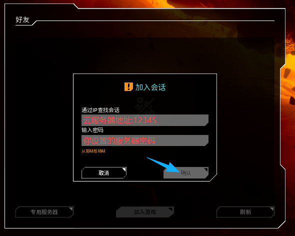 设置的连接密码填到下一行(所有联机玩家都是这样)