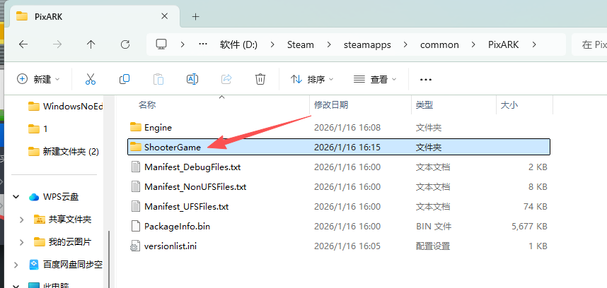 在弹出来的文件夹中从【ShooterGame】文件夹开始,根据以下路径顺序打开【Mods】文件夹